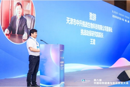 联盟成员单位代表天津市中升挑战生物科技有限公司董事长、挑战动保研究院院长王建致辞。