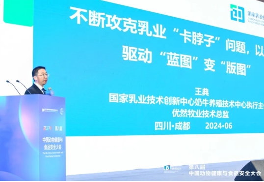 国家乳业技术创新中心奶牛养殖技术执行主任兼优然牧业技术总监王典围绕《不断攻克乳业“卡脖子”问题,以创新驱动“蓝图”变成“版图”》作主题报告。