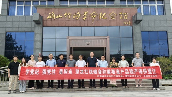 在中国共产党成立103周年之际,为传承党的优良作风,激励党员不忘初心、牢记使命,推进党纪学习教育走深走实走细,6月29日,省农业农村厅总农艺师魏国强、总畜牧师张全勇及粮作处、畜牧处党支部党员赴驻马店市确山县开展“学党纪 强党性 勇担当 坚决抗稳粮食和重要畜产品稳产保供重任”主题党日活动。
