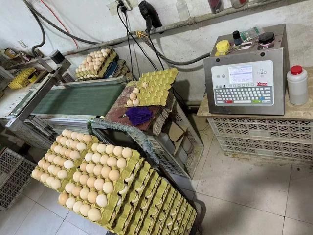 在连续蹲守后,办案民警发现大量涉案物品,同时还查明除外区这家农产品批发市场摊位外,在其他区还有一个门店也在出售该假冒品牌鸡蛋。随后,民警在外区三个点位陆续抓获徐某、杨某、张某等5名犯罪嫌疑人,当场起获两台喷码机及大量冒牌鸡蛋包装盒以及散装鸡蛋。