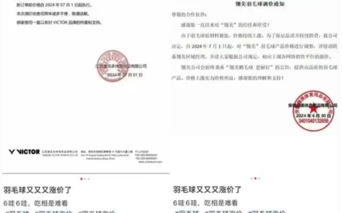7月初始,李飞得知羽毛球厂家又迎来了新一轮涨价。截至7月2日,红双喜、翎美、威克多、超牌、狮鹏、亚狮龙、威肯等多家品牌发布了调价公告,涨幅还不小。
