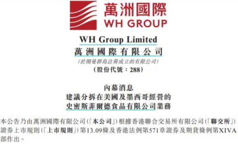 万洲国际称,史密斯菲尔德食品有限公司是一家全球食品公司,亦是其全资子公司。目前预期史密斯菲尔德在建议分拆完成后仍将是万洲国际的子公司,而其财务业绩将继续并入万洲国际的财务业绩。