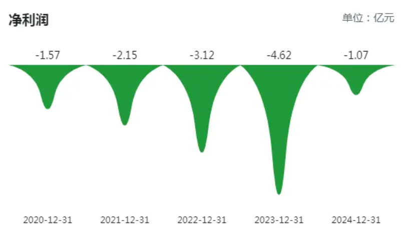 不过天域生物经营压力不小,已连续亏损5年,从2020到2024年,公司归母净利润分别为-1.57亿元、-2.15亿元、-3.12亿元、-4.62亿元、-1.07亿元。