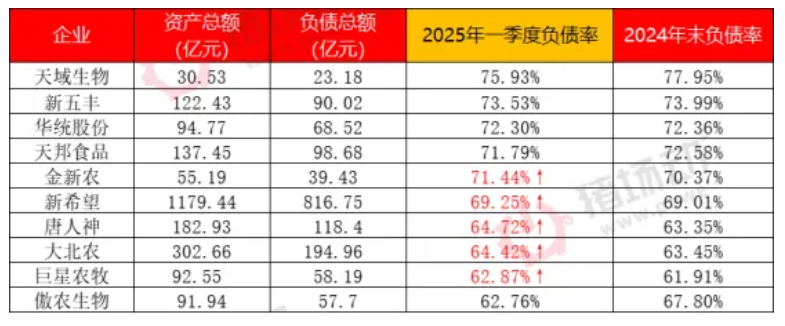 此外,公司资产负债率亦持续处于高位,截至2025年一季度末高达75.91%,排在上市猪企第一位。