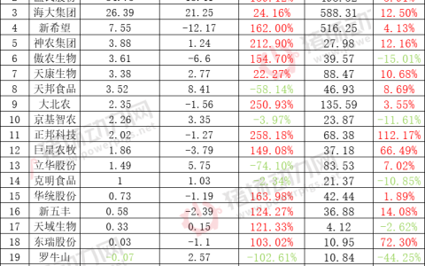 值得关注的是,新希望、傲农生物、大北农等7家企业均实现扭亏为盈,比如正邦科技,去年同期亏损1.27亿,今年实现盈利2.02亿;傲农生物去年同期亏损6.6亿,今年则盈利3.61亿;大北农去年同期亏损1.56亿,今年盈利2.35亿。