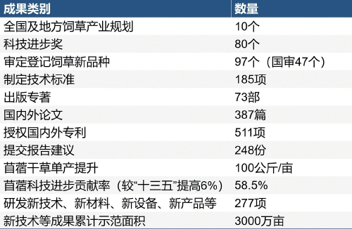 “十四五”期间,牧草体系审定登记饲草新品种97个,苜蓿干草单产提升100公斤/亩,苜蓿科技进步贡献率达58.5%,较“十三五”提高6%,新技术等成果累计示范推广面积超3000万亩。
