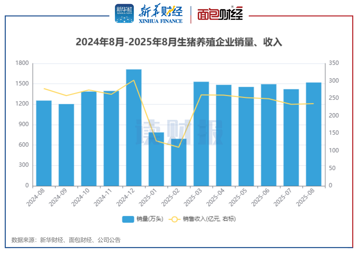 图2:2024年8月-2025年8月生猪养殖企业销量、收入
