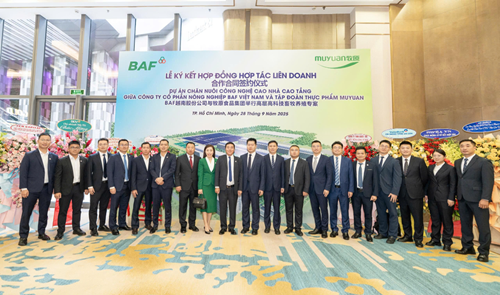 9月28日, 牧原食品股份有限公司与BAF越南农业股份公司(HOSE:BAF)在越南胡志明市正式签署合作协议。双方将合作在越南西宁省建设并运营高科技楼房养殖项目,发挥在技术、管理与本地资源上的互补优势,打造高标准、智能化、绿色化的现代养殖示范,助力提升生物安全与环境友好水平,稳定供应优质健康的猪肉产品。