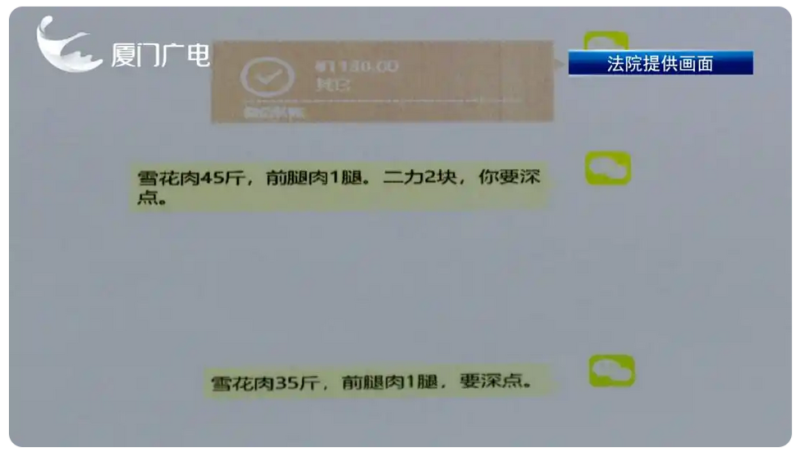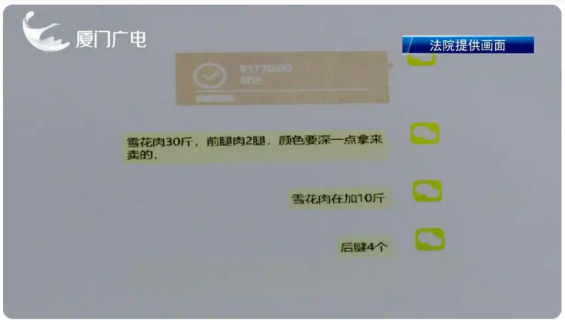 思明法院法官助理 陈杰:批发商阿亮他会根据母猪肉不同部位的肉质。来冒充不同类型的牛肉。像猪颈肉它的纹理松散,便用来冒充高价的雪花牛肉。猪排骨旁边的三层肉肥瘦相间,便用来冒充牛腩。猪的健子肉结实,便用来冒充牛腱子肉。