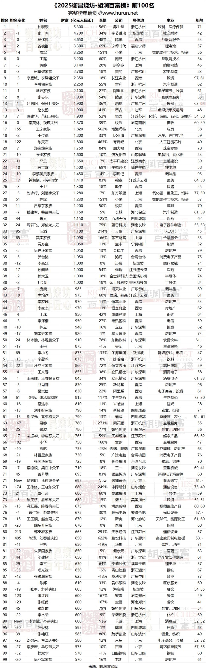 10月28日,胡润研究院发布《2025胡润百富榜》,今年是胡润研究院自1999年以来连续第27次发布“胡润百富榜”,财富计算截止日期为2025年9月1日。