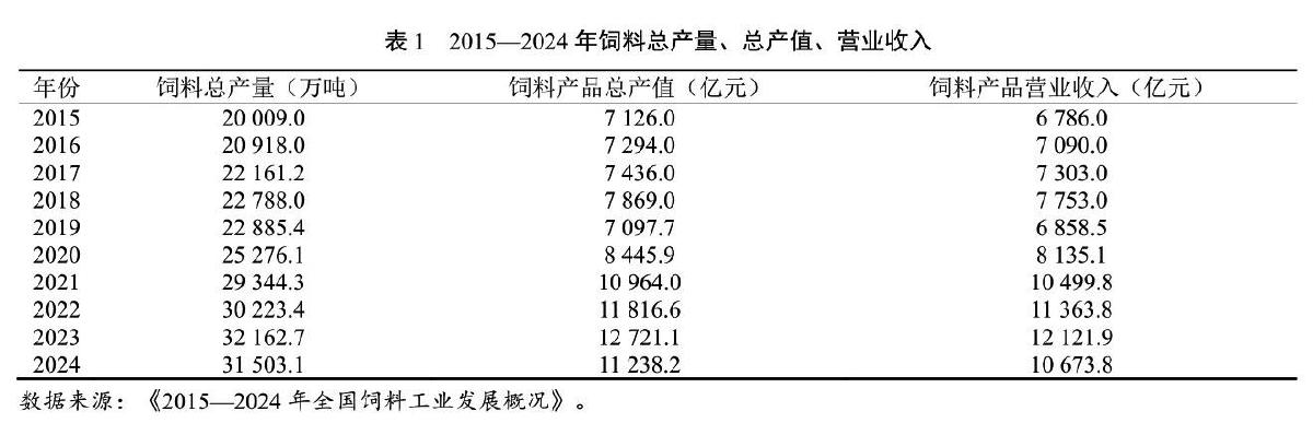 数据来源:《2015—2024年全国饲料工业发展概况》。