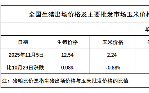 发改委发布2025年11月第1周猪粮比及猪价分析