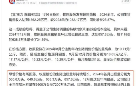 在行业普遍承压、猪价下行的背景下,牧原仍能逆势盈利,彰显其“猪茅”成色。然而,周期性波动始终是养猪业无法回避的挑战,未来能否在价格低谷中持续领跑,既考验企业的抗风险韧性,也关乎河南首富宝座的稳固与否。