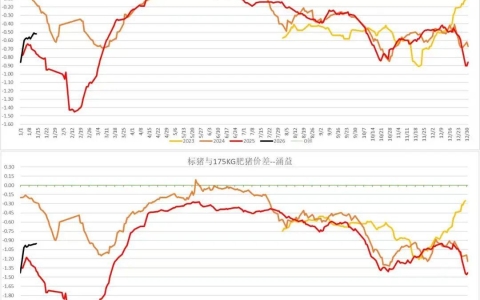 集团场生猪出栏体重偏低,散户端大猪存栏量持续处于低位,中大猪存栏规模连续几月缩减。2025年12月冬至后,市场大猪供给缺口显现,肥猪价格应声上行,标猪价格保持平稳运行,标肥价差随之快速拉大。肥猪价格涨势趋缓,进入高位震荡区间;标猪价格开启修复性回升通道,市场标肥价差逐步收窄。肥猪价格将在平稳运行基础上再度冲高,同期标猪价格涨势停滞。后续随着标猪供给压力集中释放,叠加终端需求走弱,肥猪供需格局呈现“需求降幅大于供给降幅”的特征,标猪和肥猪价格步入下行通道。此过程中,标猪价格下跌幅度显著大于肥猪,标肥价差再度扩大。而后,受生猪出栏体重偏低及二次育肥资金入场提振,标猪价格率先止跌反弹,标肥价差随之再度收窄。通过对近日猪价波动规律和底层数据分析,2026年1月上半月猪价超预期反弹是需求的边际增幅叠加短期大猪存栏缺口引发的,压力测试的结果:(2)主要交割地标猪价格:12.5—13元/公斤左右后期,受集团场生猪供给逐步放量、市场主动降低出栏体重以规避春节后消费淡季压力等因素共同驱动,猪价大概率难以再度冲高。2026年1月19日至23日,全国将迎来降温降雪天气,此阶段恰逢生猪集中出栏窗口期,猪价走势将直接锚定2026年一季度生猪估值上限。此外,官方即将发布2025年12月能繁母猪存栏数据,该数据是否跌破3900万头关口,成为市场关注的核心焦点。综合来看,当前生猪市场已临近趋势转折的关键时间节点,转折窗口的开启节奏,将直接决定2603、2605合约空头逻辑的兑现强度。从标肥价差的推演逻辑来看,即便生猪价格的估值上限锚定,其下行过程也难呈流畅态势。叠加03合约即将限仓的背景,空头资金或在2603合约价格回落阶段顺势减仓,这意味着2603合约的回落行情大概率一波三折。而一旦估值上限明确落定,2605合约的下跌趋势或将展现出更强的流畅性。