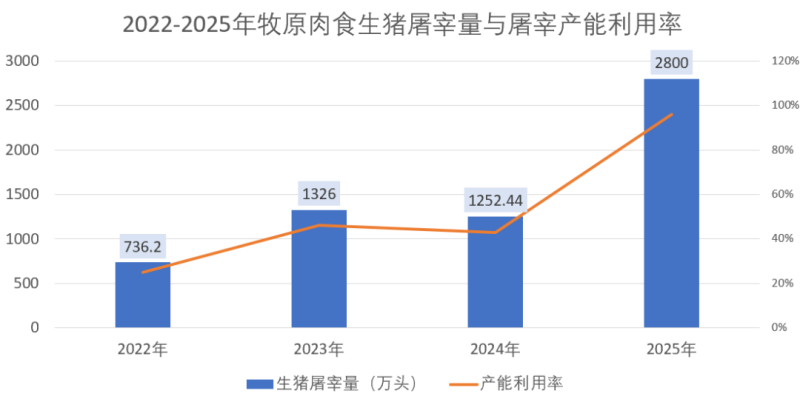 图4 2022-2025年牧原肉食生猪屠宰量与屠宰产量利用率