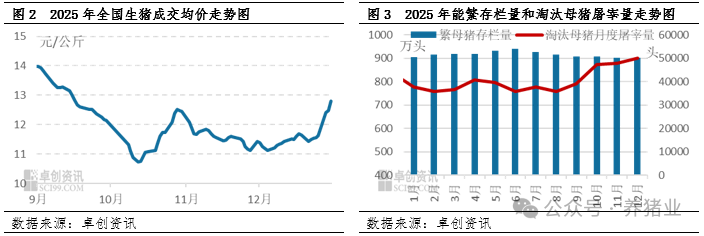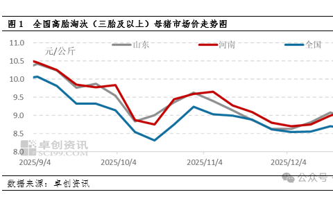 来源:🔗2025年四季度,生猪市场处于猪周期底部震荡向上行阶段过渡的关键时期,淘汰母猪行情在肥猪价格波动、终端需求支撑与供应结构调整的多重作用下,呈现“先抑后扬、抗跌性强”的显著特征。短期内,受春节备货支撑,高胎淘汰母猪价偏强运行但涨幅受限,中长期来看,随能繁母猪产能去化,其行情或将随猪周期缓慢上行。   淘汰母猪价格跟随肥猪先降后涨,但底部抗跌属性较强   从2025年四季度整体数据来看,全国高胎淘汰母猪成交均价8.97元/公斤,对应其肥猪平均折扣为75.06%,淘汰母猪折扣仍处于高水平,反映出淘汰母猪价格  2026-01-21 15:30  点击:195