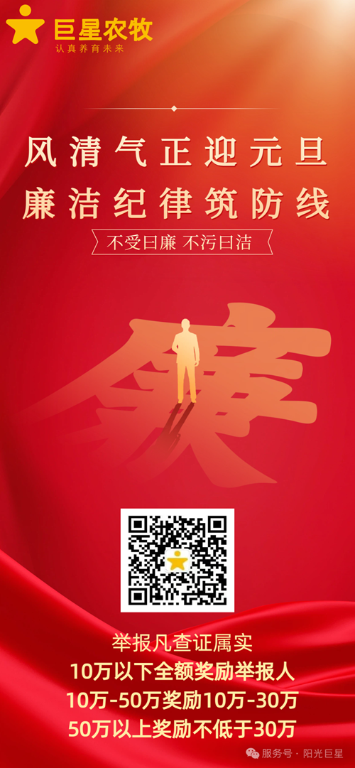 巨星农牧:2025年全新开设专门的廉洁工作微信公众号“阳光巨星”,宣导并公开廉洁相关举报的体系流程及具体案例。元旦节前夕,公众号还发布了《风清气正迎元旦 廉洁纪律筑防线》的倡议书。