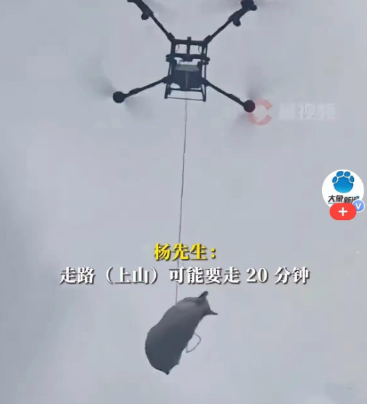 尽管存在滥用风险,无人机在养殖业中也有着积极的应用。今年1月,广西百色一名养殖户使用工业无人机吊运180斤活猪下山的视频引发关注。传统搬运需要多人协作、耗时较长,且生猪易受惊掉秤,而无人机平稳运输仅需一分钟,大幅降低劳动强度与损耗。