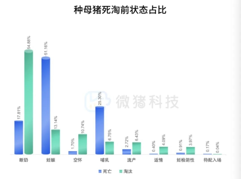 微猪科技创始人张佳博士指出,淘汰节点从过去的“空怀滞留式淘汰”转向“断奶即时评估”,表明决策更加紧凑精准。同时,死淘种母猪终生断奶仔猪数大幅提升,说明淘汰更集中于低效个体。