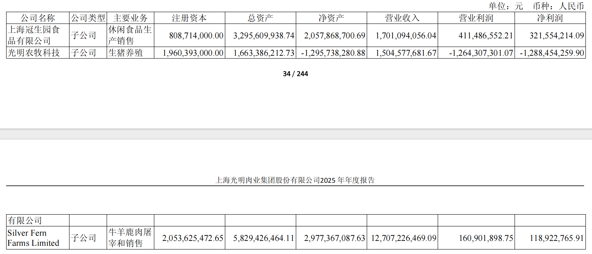 据悉,其生猪养殖业务主要由子公司光明农牧科技有限公司从事,然而,光明农牧科技有限公司2025年净利润亏损了12.88亿元,成为吞噬上市公司利润的一大黑洞。