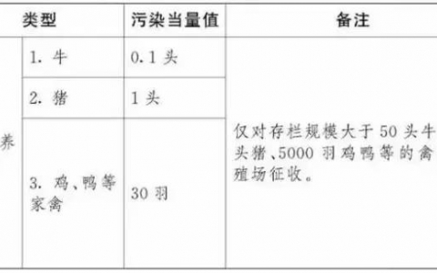 环保税实际上是过去排污费的升级版。《排污费征收使用管理条例》在2003年7月1日就已经开始实施了。并对规模养殖场的排污费征收做了明确的界定,即:仅对存栏规模大于50头牛、500头猪、5000羽鸡、鸭等的禽畜养殖场收费。