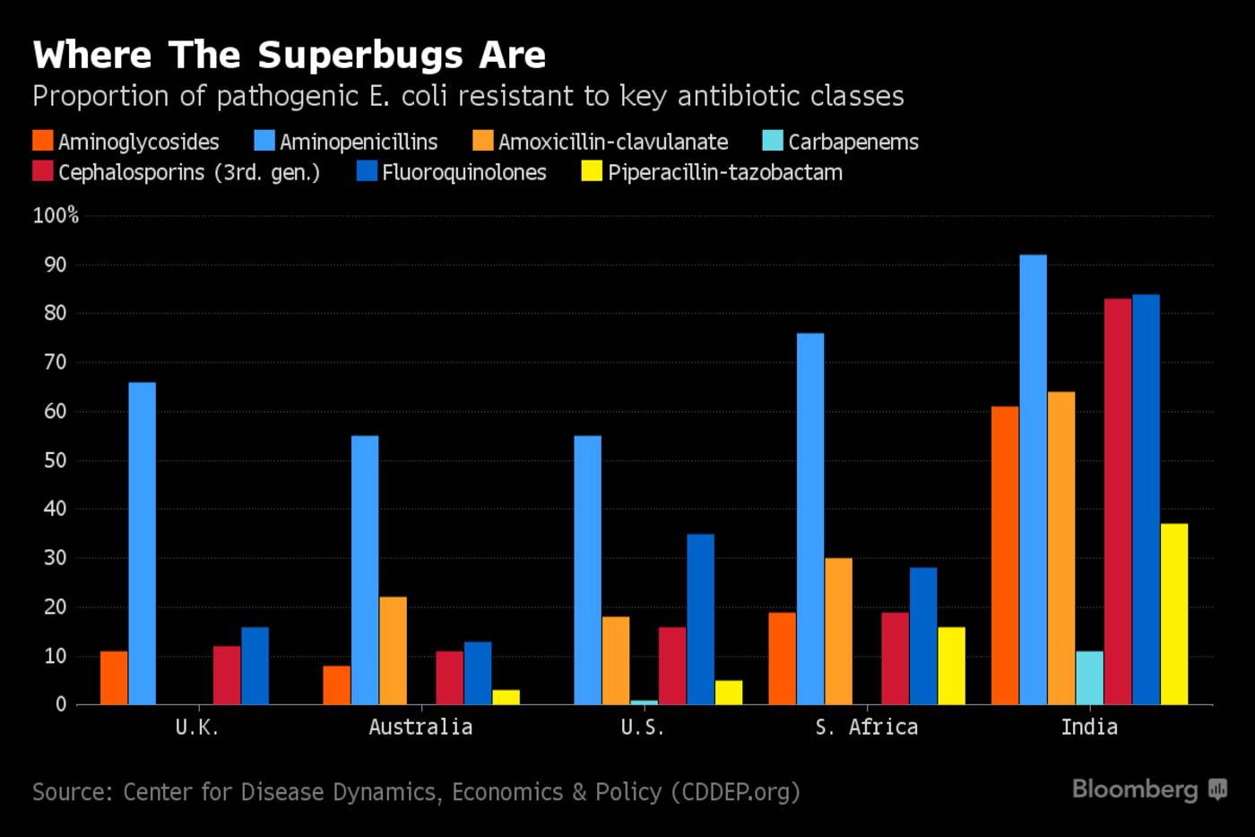 据彭博社2016年的一份调查,为印度最大的鸡肉企业提供原料的农场都会定期使用一些被世界卫生组织(WHO)认定为“至关重要”的药物,以防止鸡染病。而这份最新的研究,也是印度迄今最大规模的相关研究,则凸显了这一做法对该国食品供给带来的后果。