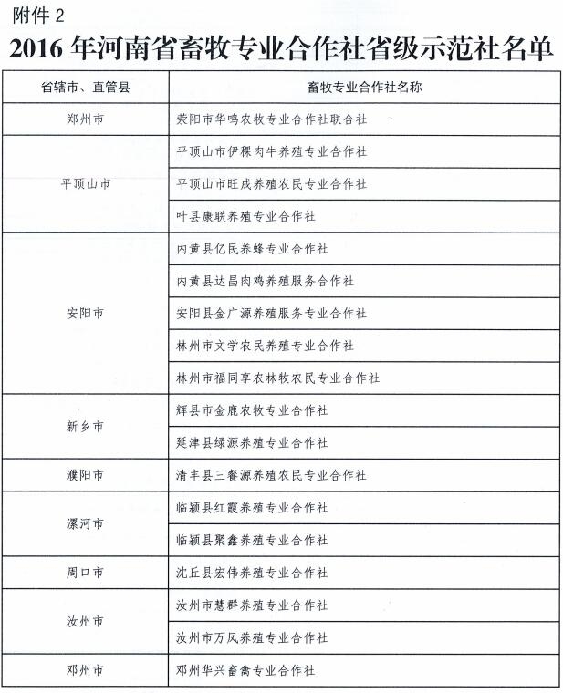 河南省畜牧局关于公布2016年河南省生态畜牧业示范场和畜牧专业合作社省级示范社名单的通知。