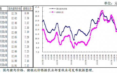 猪肉价格连续26周下跌,生猪价格连续19周下跌后震荡回升,仔猪价格连续21周回落。玉米价格小幅上涨,猪粮比价较上月下降0.07个点。生猪供给环比小幅减少、同比显著增加,猪肉进口量环比、同比均显著减少,供需面改善,猪肉消费季节性增长和猪肉进口显著下降,都有利于猪价回升。美国猪肉价格和欧盟猪肉价格同比上涨,环比下跌。