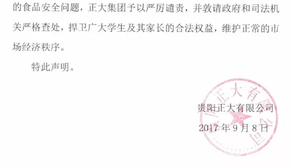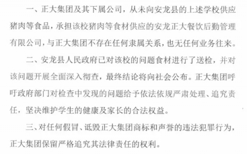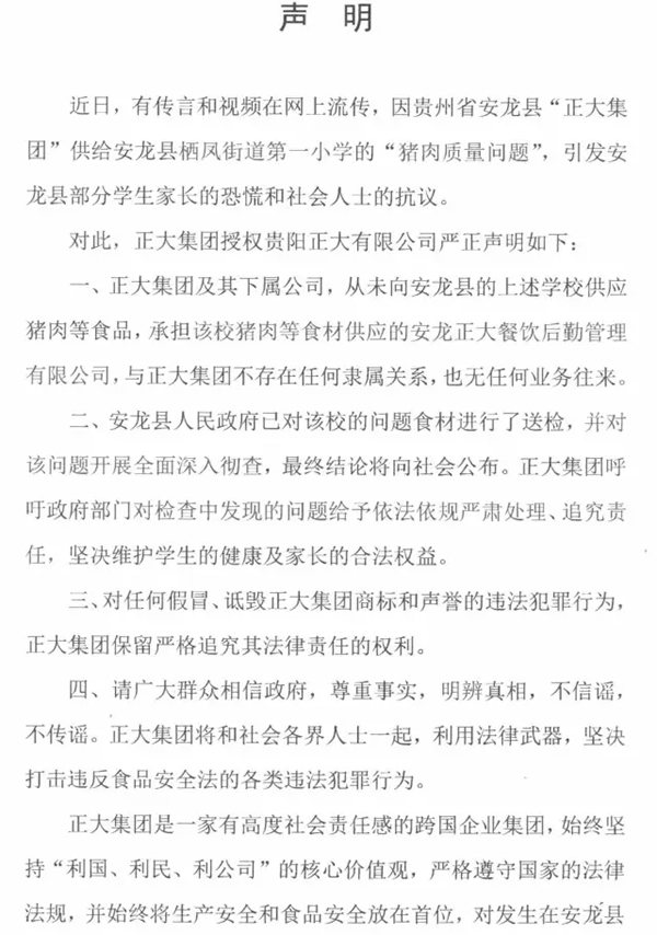 贵州正大有限公司对“猪肉质量问题”的严正声明