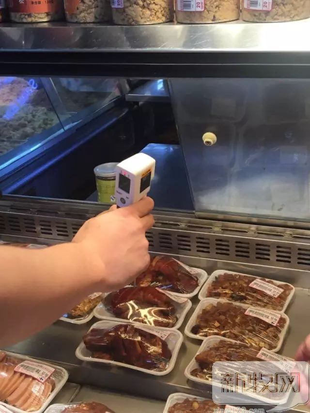 熟食区是代表们重点检查的区域。一同前去的食药监工作人员当场拿出检测仪,测一盒烤鸭的温度。电子检测仪的温度显示为22摄氏度。“按照规定,冷藏保存的食品温度应该在10度以下,这是上海的地方标准。但测下来是22度,如果高于十度的话就应全部撤下!”这位食药监工作人员要求超市方立即撤下相关食品。一旁的市人大代表朱如安告诉记者,“我们第一次把检测仪伸进去时,这盒烤鸭是28度,说明温度严重超标了。”