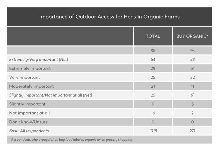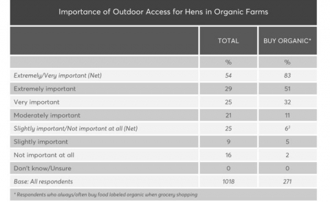 按照第三方调查机构《消费者报告》(Consumer Reports)的数据,54% 的美国人认为有机农场动物的户外空间极其重要,在有机产品的消费者里面这个比例上升到了 83%。