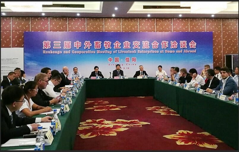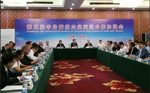 2017年9月18日下午,河南省畜牧局、省政府外侨办在信阳隆重举办“第三届中外畜牧企业交流合作洽谈会”,会议邀请了5个国家政府和大使馆官员发表了热情洋溢的讲话,分别向我们介绍了白俄罗斯、阿根廷、巴西、法国、丹麦等国家畜牧业发展的有关情况,表达了良好的合作意愿。省畜牧局局长王承启简要介绍了我省畜牧业对外开放开展情况。从对外合作意识显著增强、对外合作的层次不断提升、对外合作成效初步显现三个方面充分肯定了此次中外企业洽谈交流会所取得的成果,给众多的中外畜牧企业搭建相互交流、增进了解、发展合作的平台。