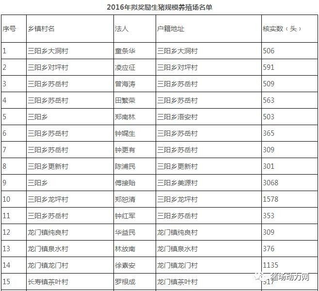 △平江县人民政府公示的2016年度生猪调出大县生猪规模养殖场名单