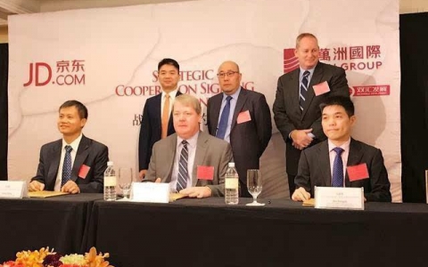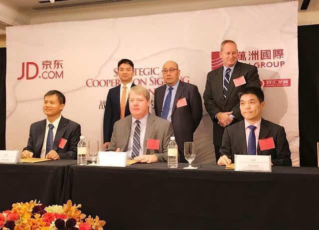 美国纽约当地时间10月24日上午,京东生鲜与河南双汇投资发展股份有限公司(以下简称:双汇发展)、美国最大的猪肉制品公司史密斯菲尔德食品公司(以下简称:史密斯菲尔德)在纽约举行了战略签约仪式。京东生鲜成为史密斯菲尔德生肉类产品在中国的线上唯一销售渠道,双方将共同打造10余款专属于京东生鲜的独家产品;并将在大数据、冷链及溯源领域展开更加深入的合作。