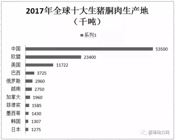 ▲全球主要养猪地五年来生猪胴肉产量统计表