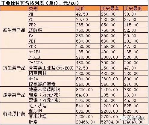 从生产层面的控制传导到市场层面,即表现为原料药价格上涨。事实上,从去年第一轮环保监察开始,部分原料药企业就停止了对外报价,目前维生素大类、硫氰酸红霉素、皂素、双烯、沙坦类原料药均缺少实时价格监控。