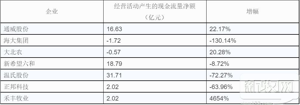 前三季的现金流中,温氏、新希望六和、通威都超10亿元,遥遥领先其他企业。说明今年企现金流方面相对以往较为紧张。