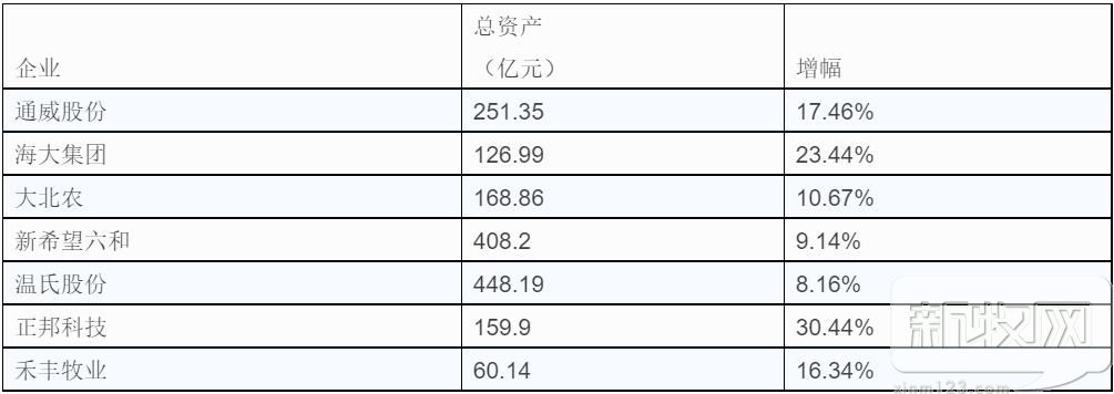 前三季来说,七家企业资产都实现增长,正邦资产增长最快,增幅达到30.44%,其次是海大集团增长26.44%;增长最慢的是温氏股份,只有8.16%。