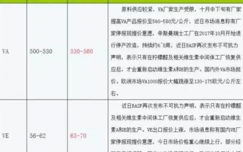 自BASF柠檬醛及VA、VE工厂关闭以来,供应面收缩令国内外VA、VE市场大幅波动,其中欧洲市场涨幅翻倍,国内市场连续上行,今日国内VA、VE涨幅扩大,购销活跃;