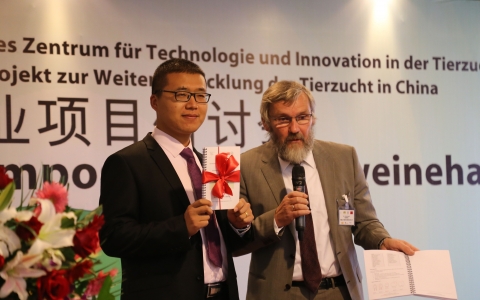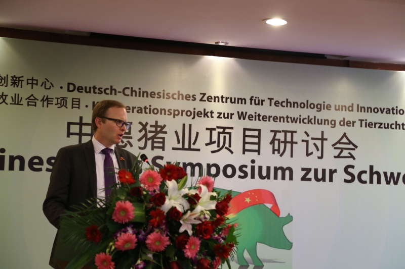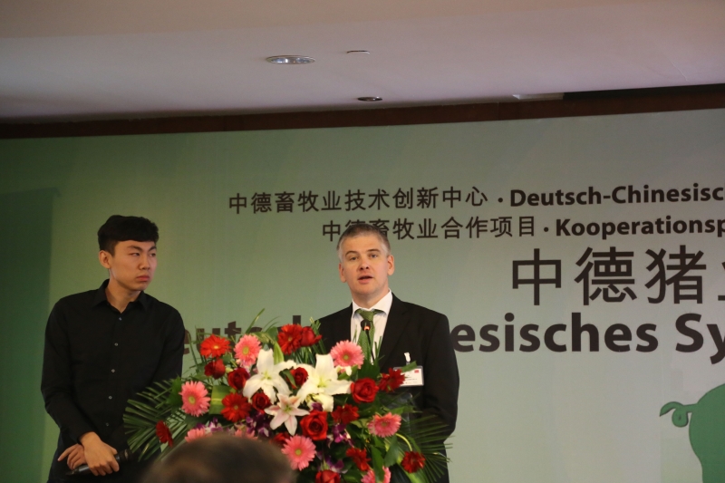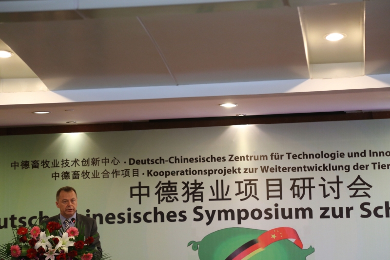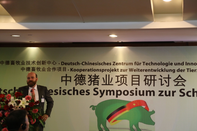 11月28日,由中国畜牧总站和德国ADT国际项目管理与咨询公司主办;河南省谊发牧业有限责任公司承办;德国勃林格殷格翰动保有限公司、德国大荷兰人国际有限公司、萨诺现代动物营养有限公司、德国Fliegl农机公司、德国PlanET公司等德国企业协办的中德畜牧业合作项目中德猪业项目研讨会在鹤壁迎宾馆隆重举行。