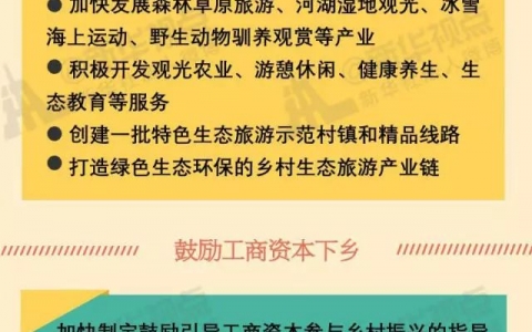 (4)家庭农场:促进小农户和现代农业发展有机衔接,发展多样化的联合与合作,提升小农户组织化程度。实施休闲农业和乡村旅游精品工程,建设一批设施完备、功能多样的休闲观光园区、森林人家、康养基地、乡村民宿、特色小镇。