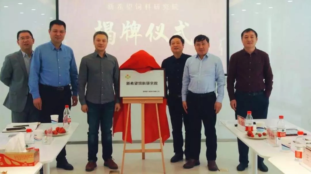 2月25日,新希望六和饲料研究院在成都正式揭牌。新希望六和总裁邓成、副总裁兼成都片联总裁韩继涛、副总裁兼山东经营特区总裁陶玉岭、副总裁兼海外特区总裁杜江平、华北片联总裁刘雷与饲料研究院院长朱正鹏博士一同为饲料研究院揭牌。