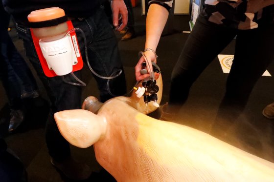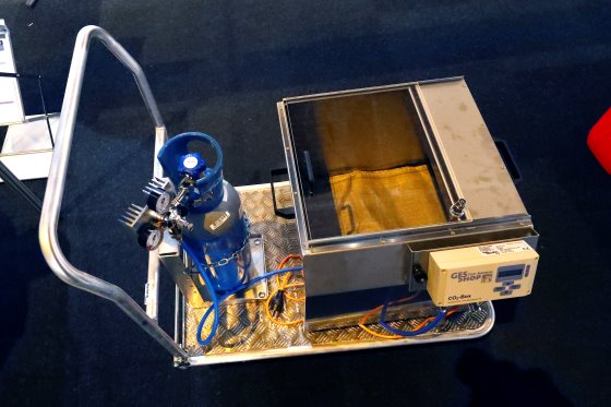 Agro TopShop在展会上推出了一款使用二氧化碳给猪实施安乐死的创新产品:“CO2 box-500”。该设备适用于重达5千克的仔猪,确保动物能够逐渐丧失意识。