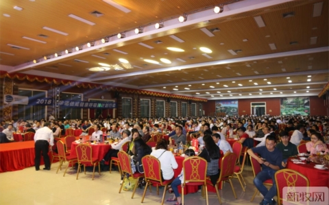 2018年3月18日晚,借着壮乡养猪节的势,浙江诗华诺倍威生物技术有限公司携手农财宝典金牌服务商——南宁鹤轩生物科技有限公司(下面简称“鹤轩”)共同举办了招待晚宴,800多号人的参与规模,已经刷新了记者参会所见的最高参与人数!而这800多名贵宾涉及了广西养猪界各个阶层的人士,包括企业高管、业务员、集团化猪场老板、协会专家……