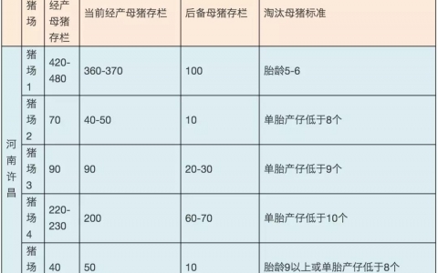 多数受访猪场和当地母猪存栏都是稳中有降;同样,多数受访者的育肥猪都不满栏。调减存栏的方式是提高母猪淘汰标准,5-6胎后就开始淘汰(行情好的时候7-8是常事),更多的做法是:不管产了几胎,只要产仔数低于预计的标准水平就进行淘汰,且淘汰标准比去年明显提高。此外相当多受访猪场都不留后备。这样母猪存栏结构得到优化,平均胎龄一般在3-4胎。这样实际的母猪繁育能力在整体上并未受到太大影响,一旦行情好转,可以迅速扩繁育肥。