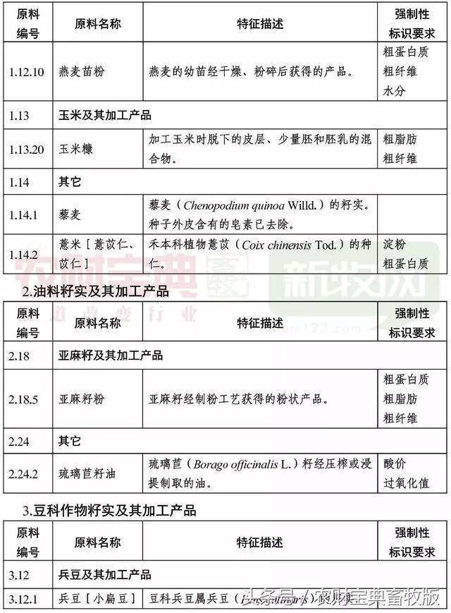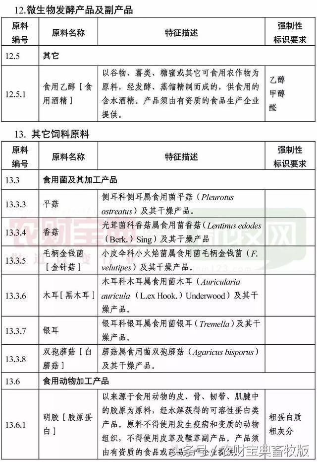 《饲料原料目录》修订列表