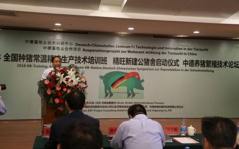 论坛期间,还举行了“2018全国种猪常温精液生产技术培训班”开班仪式,并为中德合作项目——河南谊发牧业有限责任公司新建种公猪站举行了揭牌仪式。
