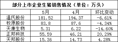 从图中我们很容易看出,5月份温氏、牧原、天康生猪出栏量环比均有所下降,分别为-6.61%、-4.34%、-14.6%,而正邦、天邦生猪出栏量环比却表现为增加,尤其是正邦科技环比增加达20.29%。 目前猪市风平浪静,持续震荡调整;夏季高温天气,猪肉消费多转向瘦肉型生鲜肉,对大体重猪源将扣除一定费用,规模场挺价意愿较为强烈,市场标猪或再现紧缺,另加,中旬是农忙麦收期及端午节时期,三大利好因素或助力猪价上涨。 |