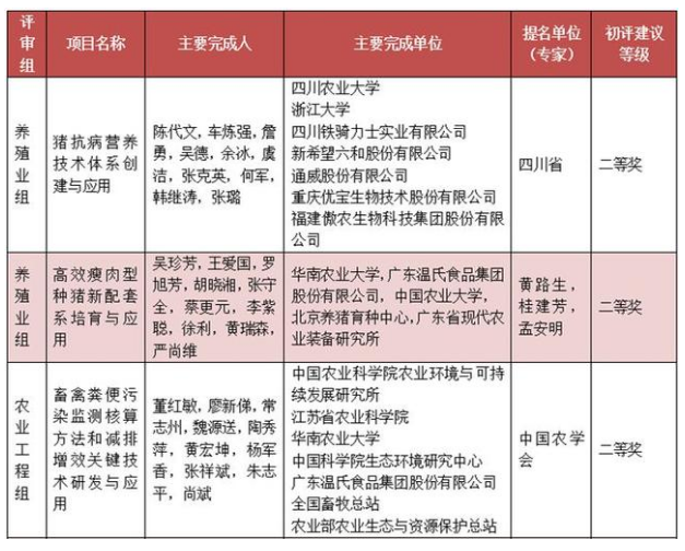 四川农业大学陈代文教授等主持完成的“猪抗病营养技术体系创建与应用”(初评建议科技进步奖二等奖)