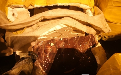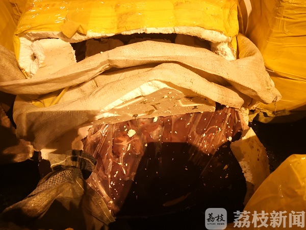 随后,民警找来了六合区农委畜牧兽医部门工作人员前来调查。经查,该营运客车行李箱共运输58箱生猪肉,初步估计2.5吨,此次运输未按规定携带动物产品检验检疫合格证、消毒证等材料。该批猪肉从商丘运输到宁波,两地距离近千公里,如此长时间没有任何低温、保鲜、消毒的运输措施,而是简单地通过泡沫箱包装后在客车行李箱内运输。
